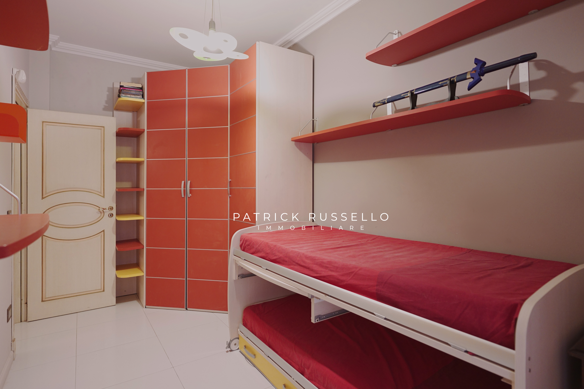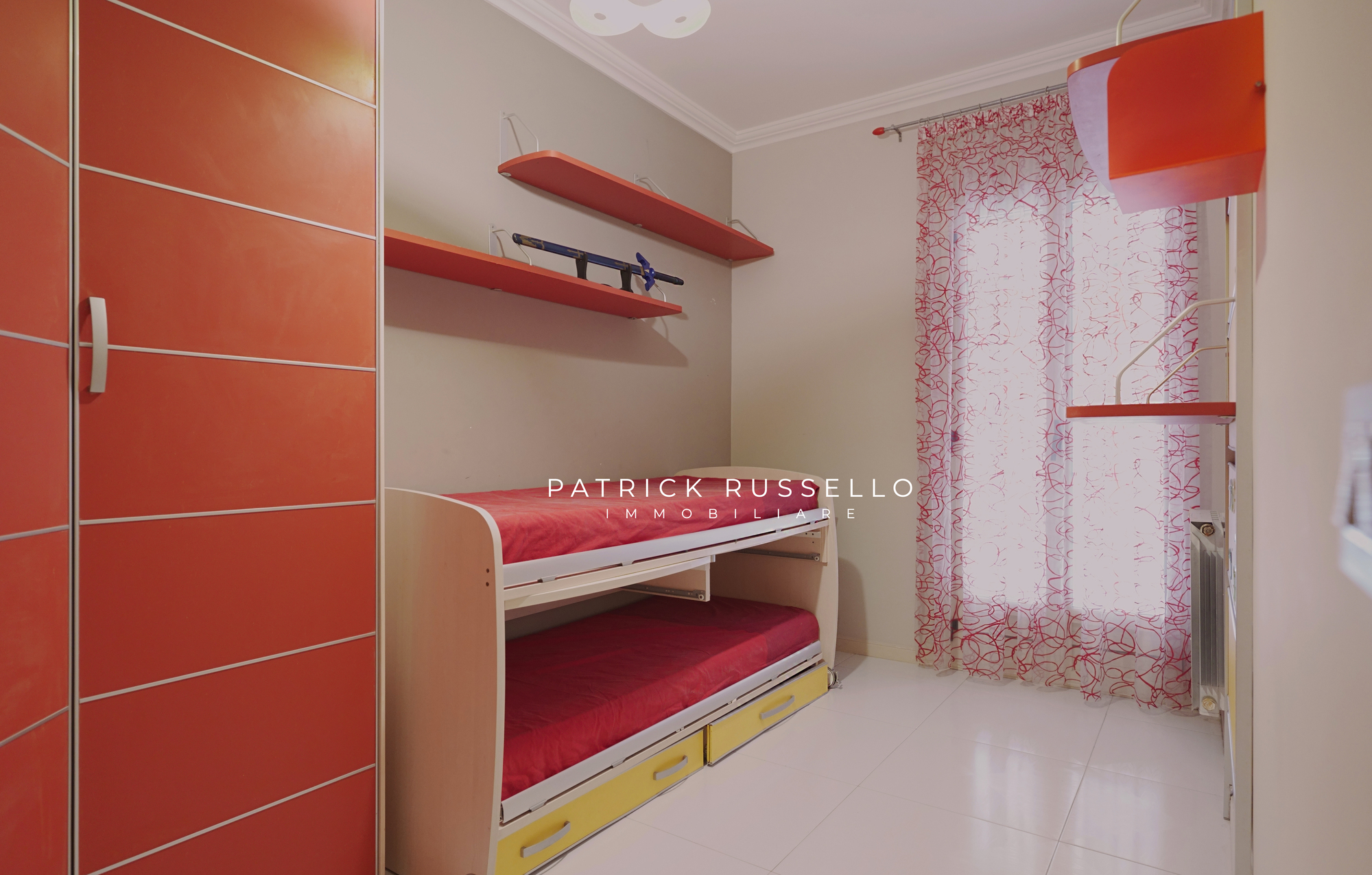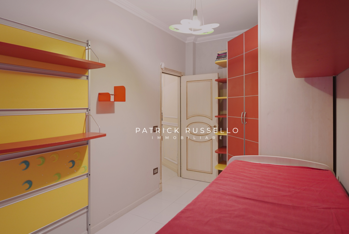 L’appartamento, in buono stato, è composto da ingresso, luminoso salone, angolo cucina con zona pranzo, una camera da letto matrimoniale, due camerette e bagno.
